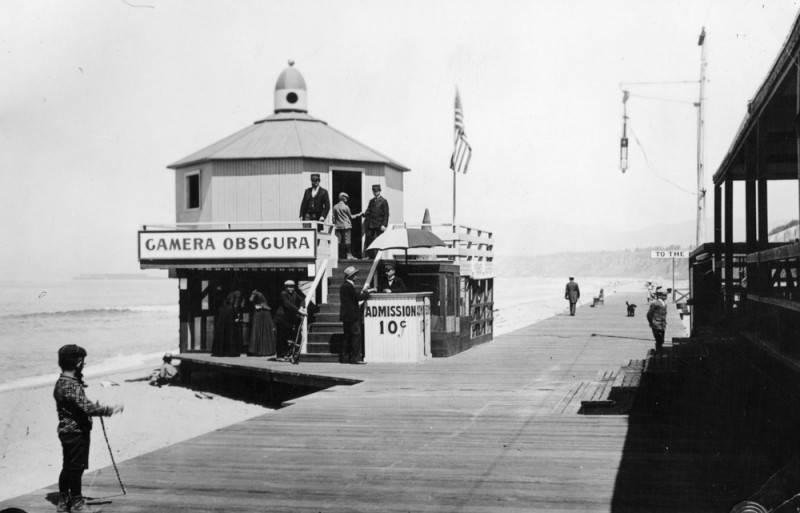 Santa Monica’s Camera Obscura was first built in 1898 by then-mayor Robert F. Jones with the intention of attracting tourists to his city. He charged eager curiosity seekers 10 cents a viewing. For years it was a big draw along Santa Monica Beach. It was even loaned our for a time to the city of Los Angeles and placed in Westlake Park (now MacArthur Park).