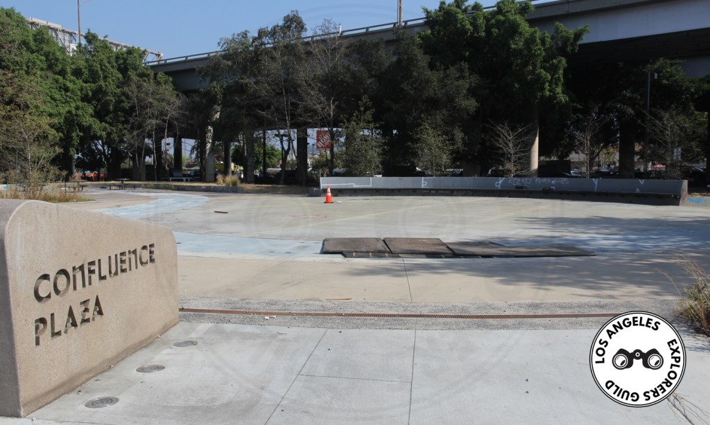 The city once thought Confluence Plaza would be a destination for families to come and watch the dancing waters in an $800,000 fountain (designed by Wet Design, the same firm who devised the fountains at the Bellagio in Las Vegas as well as those at The Americana and The Grove) as traffic on the 110 roared overhead.