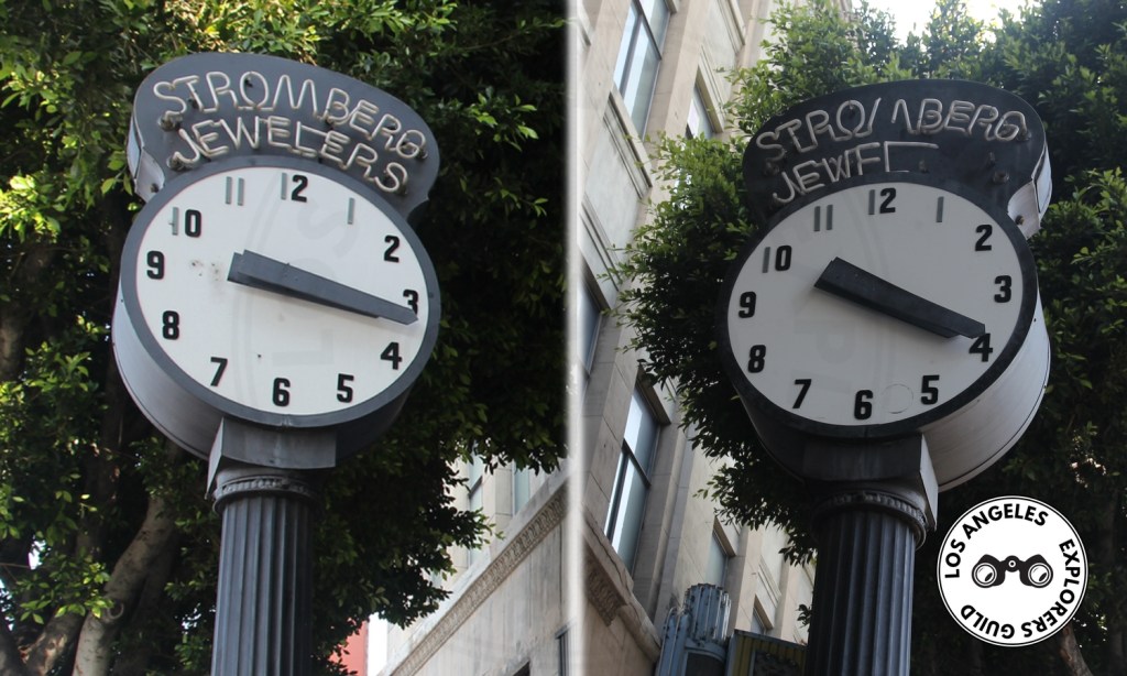 Although the Stromberg Clock is the most famous of the Los Angeles sidewalk clocks, it’s not the oldest. That distinction falls to the Broadway Street Clock in Lincoln Heights, which was erected in 1910. Like the Stromberg Clock, it originally served as street-side advertising for a jewelry store.