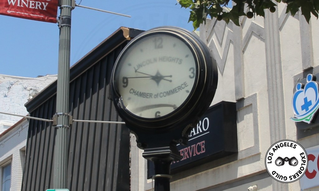 Today, the Broadway Street Clock, emblazoned with “Lincoln Heights Chamber of Commerce” across its face, stands just down the street the unassuming entrance to the Los Angeles headquarters of the Adventurers Club. But the clock has again fallen into a state of disrepair. The glass covering the face is broken in a few places and stickered over in others, it’s got a deep dent on the street-facing side, and its hands no longer seem to move.