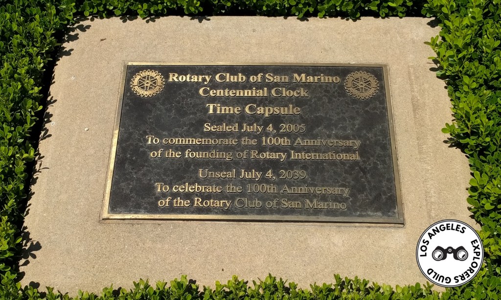 The San Marino Centennial Clock, manufactured by the Electric Time Company of Massachusetts (for around $70,000) is the largest sidewalk clock in the area.