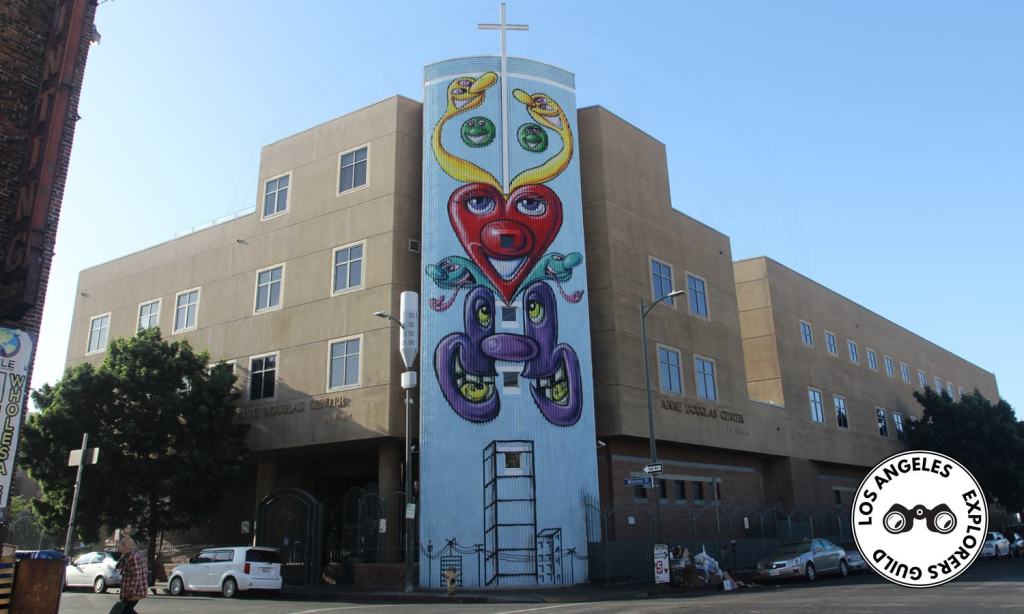 One of Kenny’s latest Los Angeles murals covers what was once the dull wall of the World Impact building along The 10 Freeway.