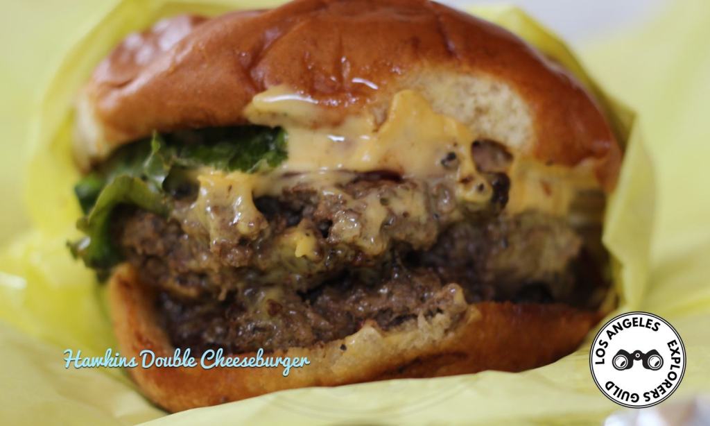 Hawkins House of Burgers is legendary to burger-savvy Angelenos. If you’ve been there, you know what I mean. If you haven’t, National Cheeseburger Day is a great day for your first visit. The Double Burger at Hawkins isn’t your thin-patty smash burger. This is a meaty, perfectly messy, monster-sized burger that stands in stark contrast to the current trendy ultra-thin smashed patties.