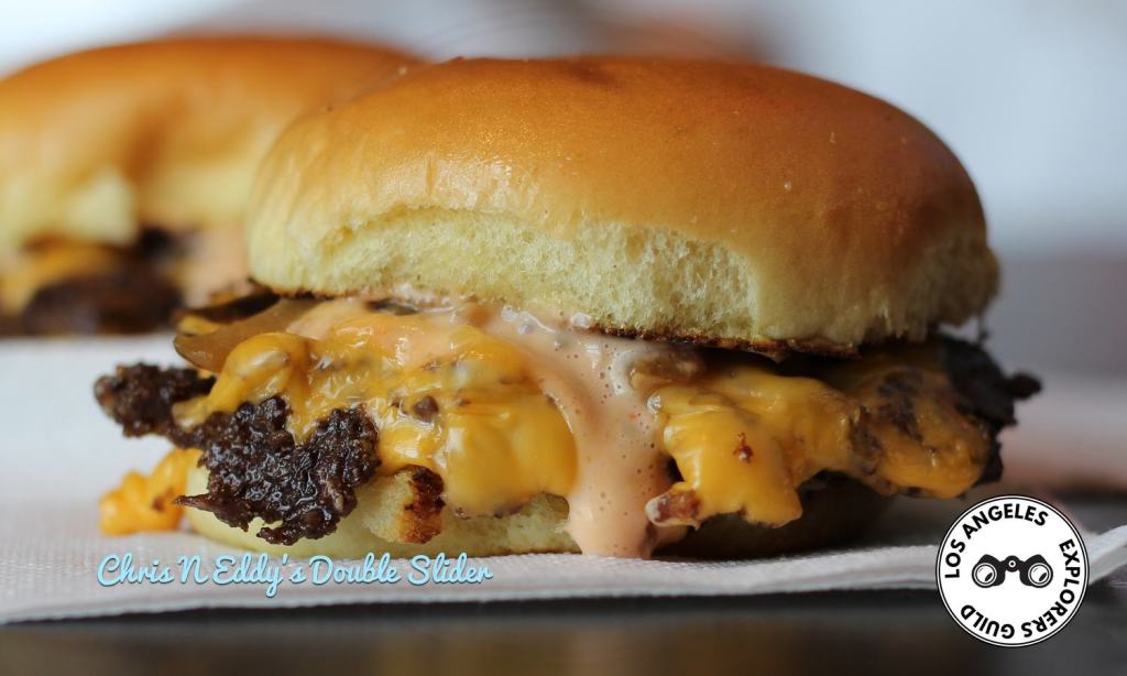 The latest newcomers to the Los Angeles smashburger scene, Chris N Eddy’s has been slinging their street-burger Double Sliders from a truck in front of Sunset’s shuttered Sycamore Tavern (right across the street from an In-N-Out, no less) for the better part of the pandemic. But in August they made the jump from pop-up to a full-fledged restaurant inside a small strip-mall space (formerly a Ono’s Hawaiian BBQ) just two miles to the east.