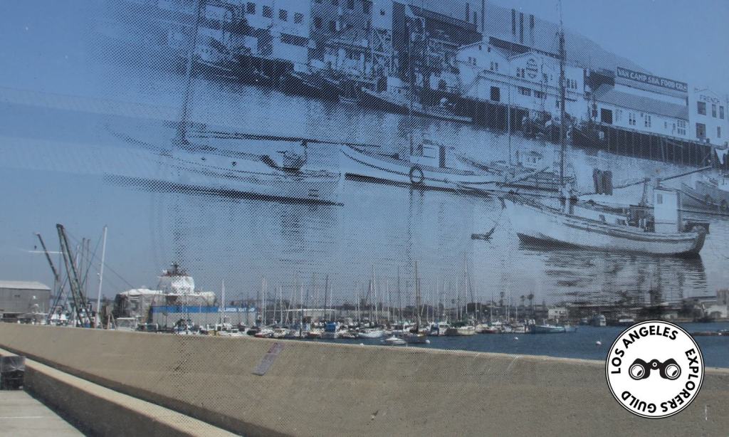 Through the glass, you can see the modern-day marina covered over by the ghostly image of boats moored at the former fishing village with canneries from across the harbor in the background. It’s a haunting image and dark reflection of the community’s tragic history.