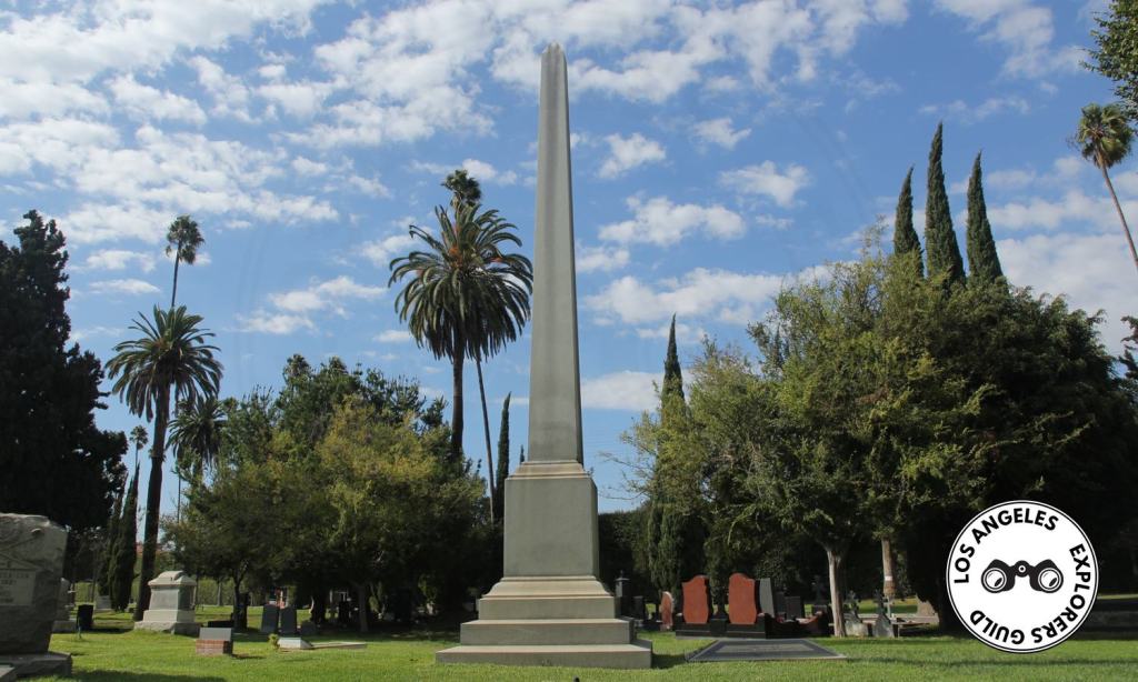The Colonel is buried in Hollywood Forever Cemetery on a section known as the Griffith Lawn, marked by a tall monument that, if you’re standing in just the right spot, points the way to Griffith Observatory.