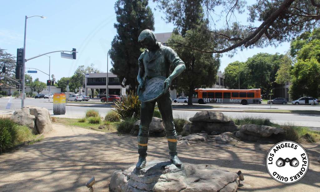For nearly one hundred years (less a few months — more on this below), a bronze statue of a tall man, dressed in a western-style shirt with rolled up sleeves, has been panning for gold in the center of Carthay Circle Park. Although the sculpture is intended to honor the pioneers who journeyed west to California during the Gold Rush of 1849, it’s more accurately an homage to just one man — Daniel O. McCarthy.