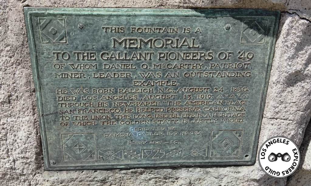 This fountain is a Memorial to the Gallant Pioneers of ’49 of whom Daniel O. McCarthy, patriot, miner, leader, was an outstanding example.