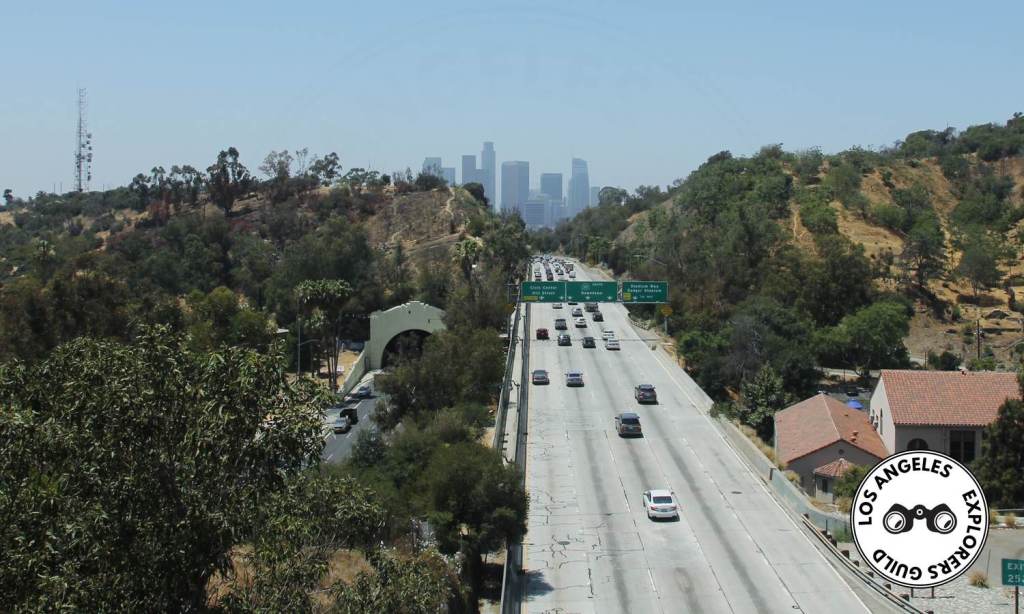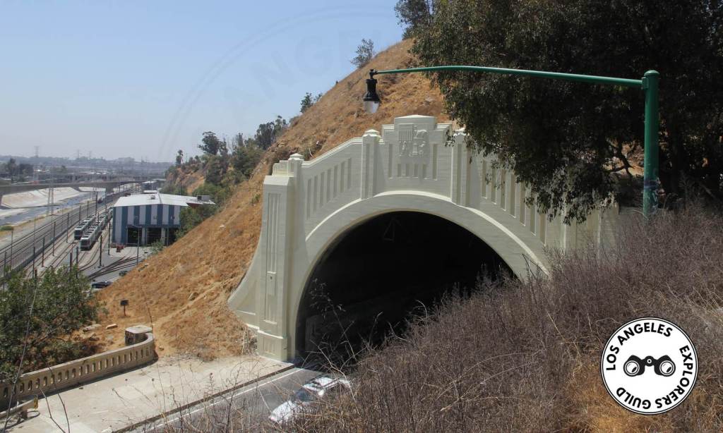 As you walk, the 110 North will be on your left, and you’ll get a great view of the four Art Deco Figueroa Tunnels. The keystone of each tunnel displays the official Seal of Los Angeles.