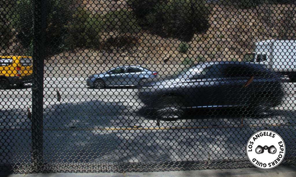 Traffic zipping along the 110 South just on the other side of this fence. Photo from the author’s collection.