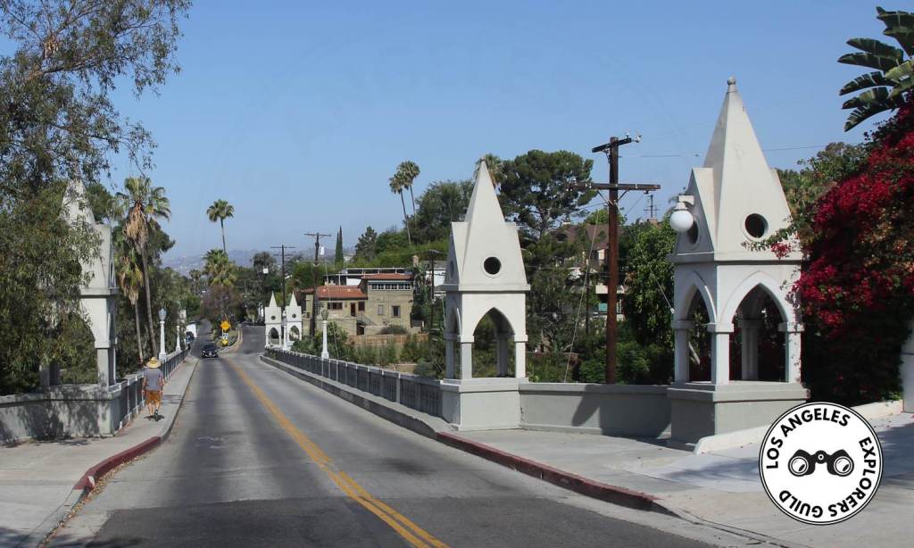 In Los Feliz, you can traverse an elegantly styled Gothic bridge, named for William Shakespeare, that spans a dry stream bed.