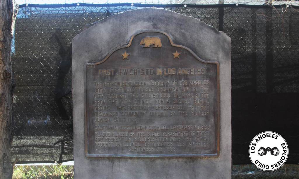 Wedged between Dodger Stadium and a firefighter training facility you will find a concrete plaque marking first Jewish site in Los Angeles.