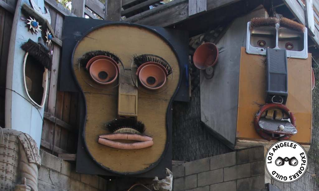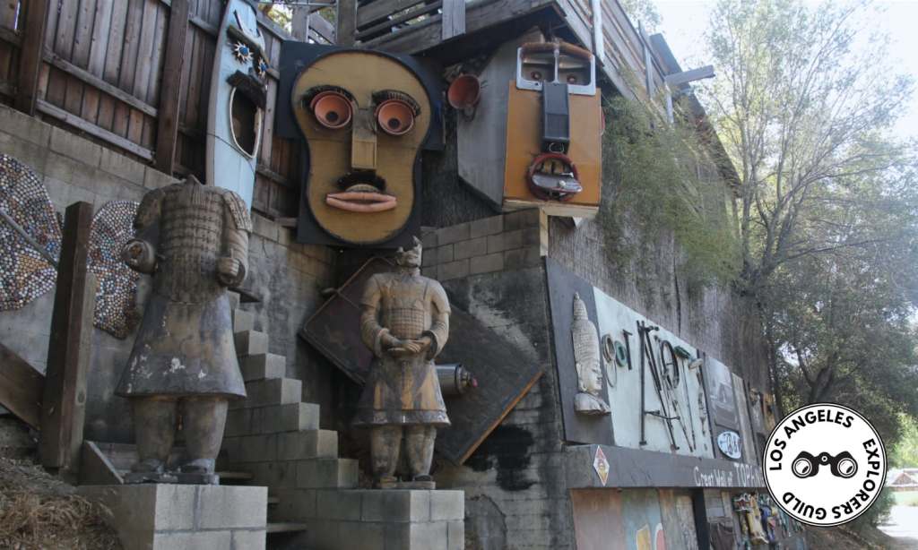As you drive along the winding Topanga Canyon Road you’ll come across a pair of Terracotta Warriors guarding a giant mousetrap under the eye of three avant-garde faces in what amounts to a whimsical drive-through art gallery.