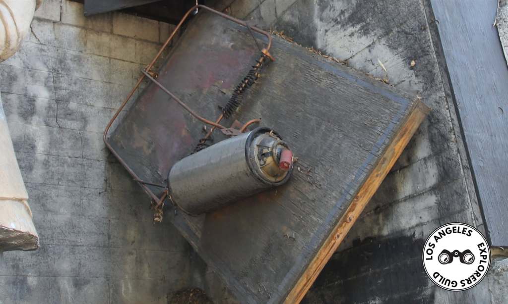 Banksy Trap. Denman crafted a giant rat trap with an over-sized spray-paint can as the bait in a tongue-in-cheek nod to Banksy, who often depicts himself as a rat. Initially, the Banksy-attracting rat trap was installed over the shoulder of the road. But a California Highway Patrol officer called it a hazard to cyclists, so Denman moved it so it would be out of the way and would offer better photo opportunities for visitors admiring the wall.