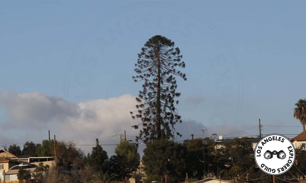 An unusual and iconic tree, visible for miles, stands tall at the top of a hill in East Los Angeles.