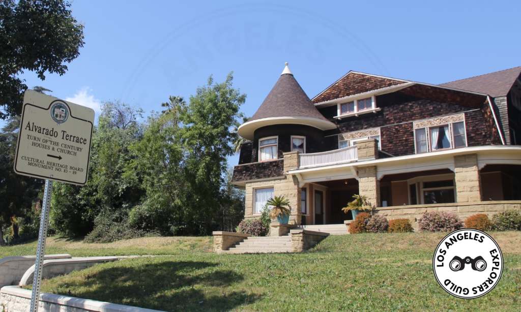 When standing at Powers Place you can’t help but see the Gilbert Residence with its iconic “witch hat” at 1333 Alvarado Terrace. This is just one of six buildings granted Historic-Cultural Monument status (and all on the same day — July 7, 1971) for exhibiting “… Victorian architecture on a grand scale …”. But that’s an Exploration for another day.