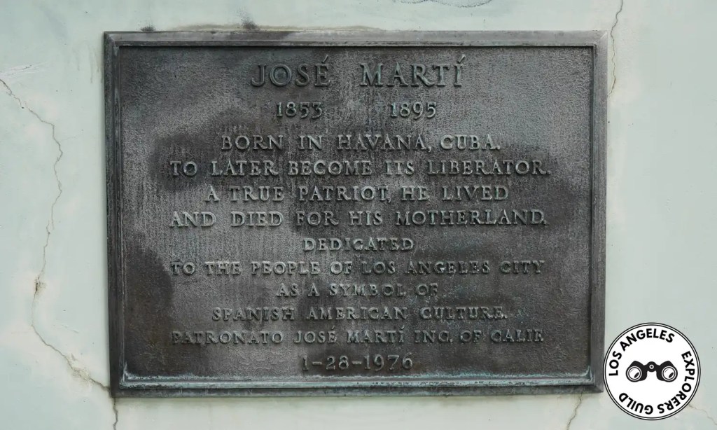 The statue features a few plaques bearing the usual inscriptions. A plaque mounted on the right side of the statue’s base summarizes the life of Señor Marti, sculptor Lopez-Mesa, and the importance of Echo Park to Angelenos of Cuban descent.
